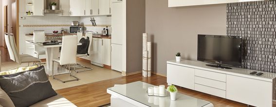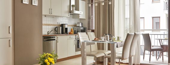 There are 100 apartments at this property, including various arrangements and sizes to choose from. All of the guest rooms include a fully-equipped kitchen furnished with dishware, cookware, and utensils. There is also an in-room safe and cable TV for your enjoyment, along with complimentary bottled water in all guest apartments. Private bathrooms include modern furnishings and you’ll enjoy privacy with the included blackout drapes.